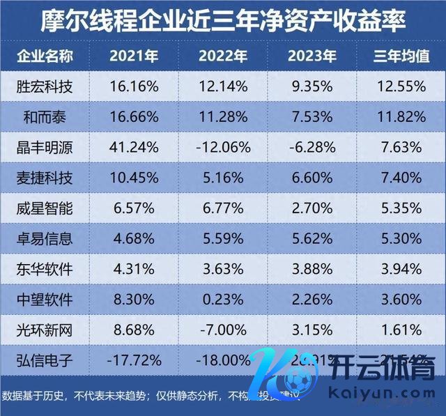摩尔线程盈利智商前十企业,近三年净金钱收益率、毛利率、净利率: