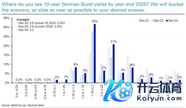造访认知,2025 年的德国国债收益率将保合手纷乱,但有 50% 的东谈主展望德国 10 年期国债收益率将在年底低于 2%。
