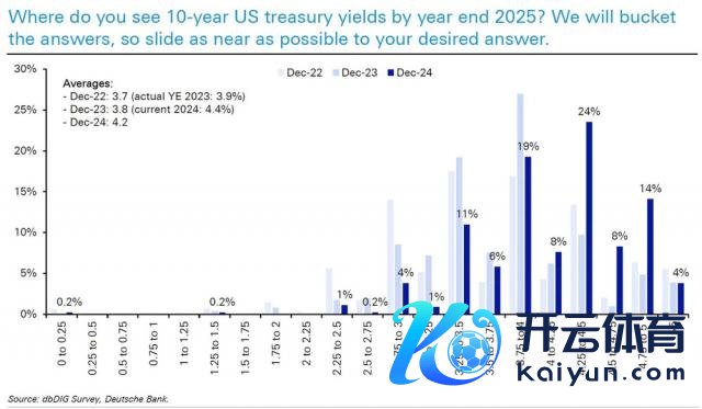 受访者平均预期 2025 年的好意思国国债收益率为 4.2%,略低于现时 4.5% 的水平。