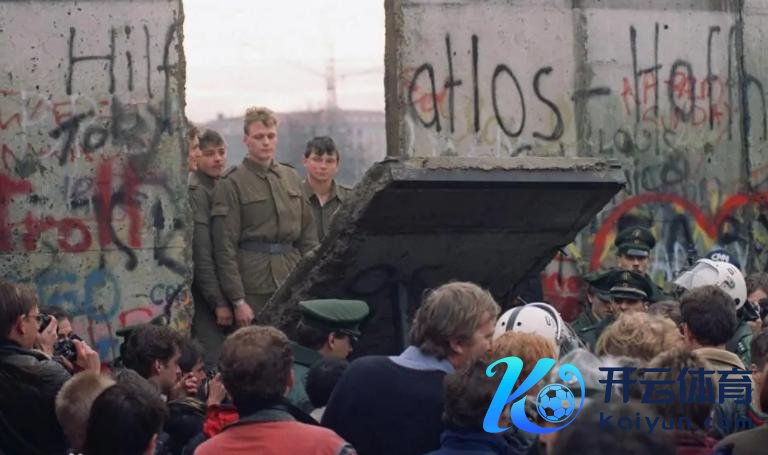 被推倒的柏林墙,1989年。柏林墙是德国分裂时间民主德国政府环绕西柏林边境修筑的边防系统,以将西柏林与民主德国幅员分割开来。