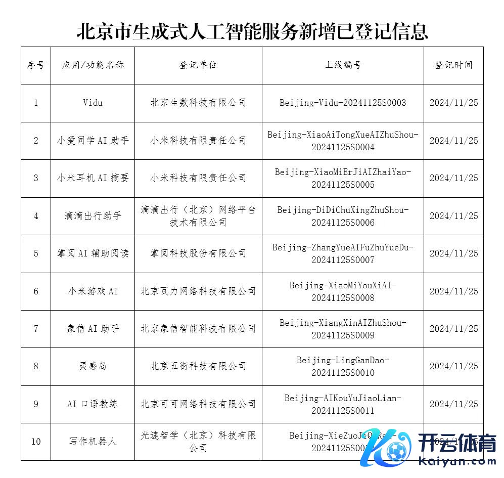 北京新增10款已完成登记的生成式东说念主工智能职业 17 2024-12-02 11:25